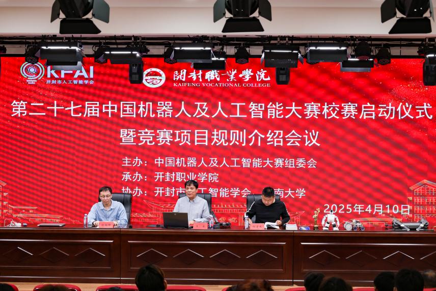 为激发学生创新潜能、培养人工智能与机器人领域的高素质人才,推动科技教育与产业实践深度融合,第二十七届中国机器人及人工智能大赛校赛启动仪式暨竞赛项目规则介绍会议于4月10日晚在毕昇楼报告厅隆重举行,会议由开封职业学院创新学院院长祝朝坤教授主持。